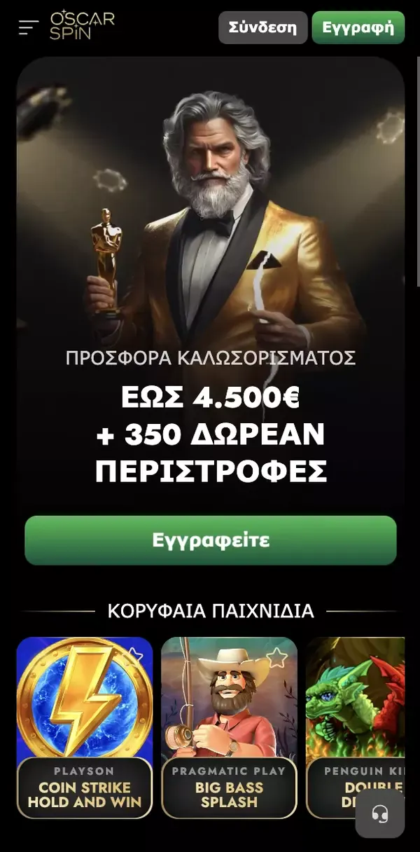 - Εκτεταμένη βιβλιοθήκη παιχνιδιών: πάνω από 3.000 τίτλοι σε κουλοχέρηδες, επιτραπέζια παιχνίδια, live παιχνίδια, video poker, jackpots, crash games και επιλογές instant win. Για τους φίλους των κουλοχέρηδων Oscarspin, περιλαμβάνουμε στούντιο όπως Pragmatic Play, NetEnt, BGaming, Playson και Yggdrasil Gaming.